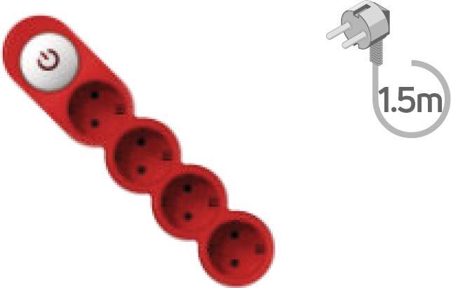 Χαρακτηριστικά : Πολύπριζο 4 θέεων HOMIE με διακόπτη και καλώδιο 1.5m